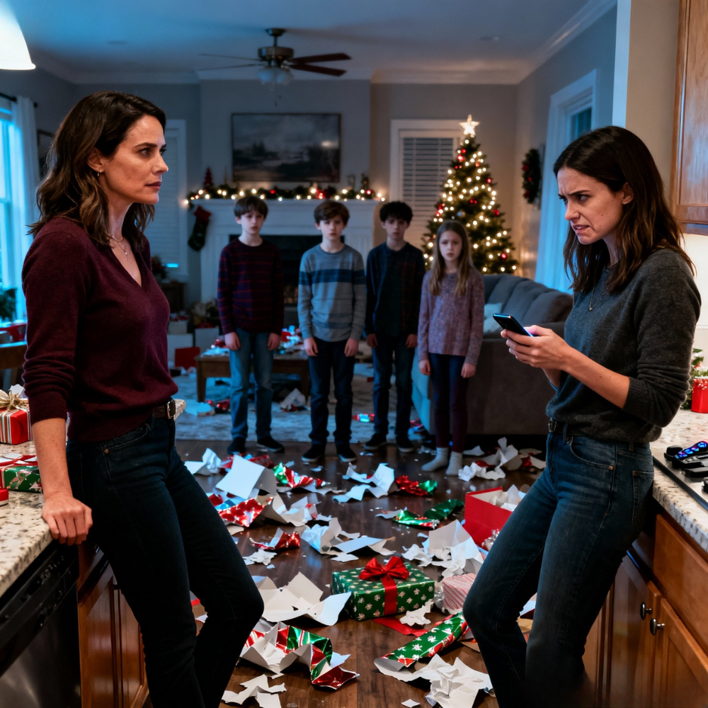Five children were screaming in different octaves, running through my living room, knocking ornaments off the tree I’d spent three hours decorating. A tower of gifts I’d wrapped by hand was already crushed beneath a toddler’s boots. And every adult in the room—my aunts, my cousins, my brother-in-law, even the neighbor my sister insisted on inviting—stared at me as if I were a household appliance they were entitled to switch on whenever they pleased. A dishwasher. A babysitter. A background character in their perfect family holiday.