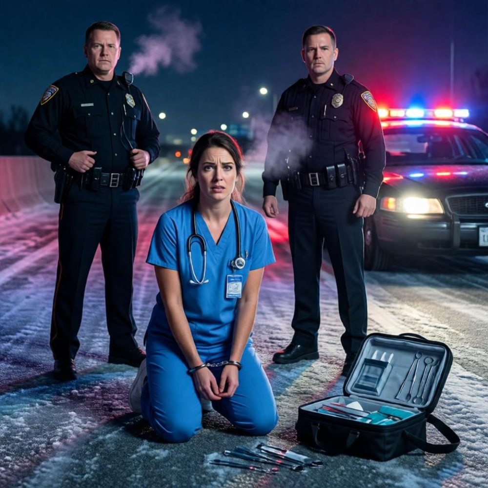 On a quiet stretch of Interstate 77, just outside Richmond, where the road cuts through pine trees and the cold settles low across the asphalt, Dr. Maya Hartwell stood facing something she had never trained for—not war, not trauma, not chaos—but power used in the worst possible way.