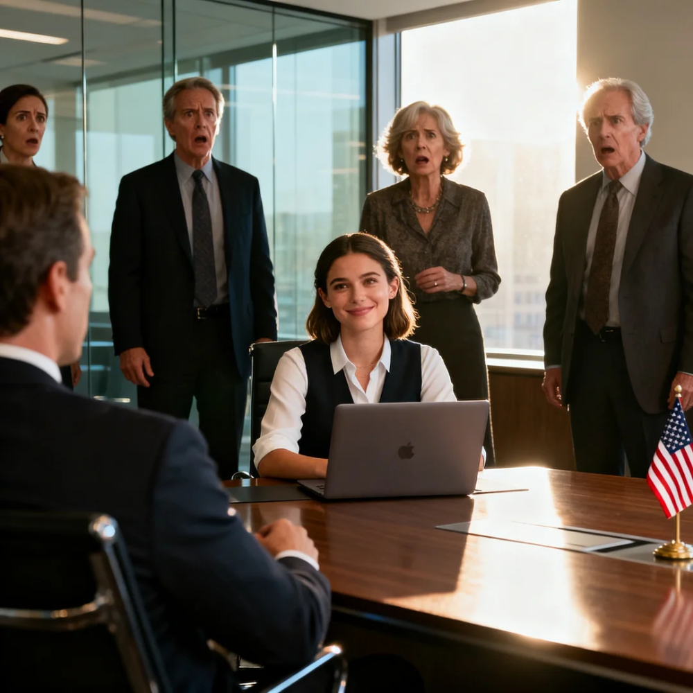 Sunlight from the tall windows of the Boston financial district tower stretched across the polished surface, reflecting rows of tense faces—lawyers, board members, executives who had spent decades believing they understood power. Papers lay scattered like surrender flags. Coffee cups had gone cold. And at the far end of the table, my father laughed.