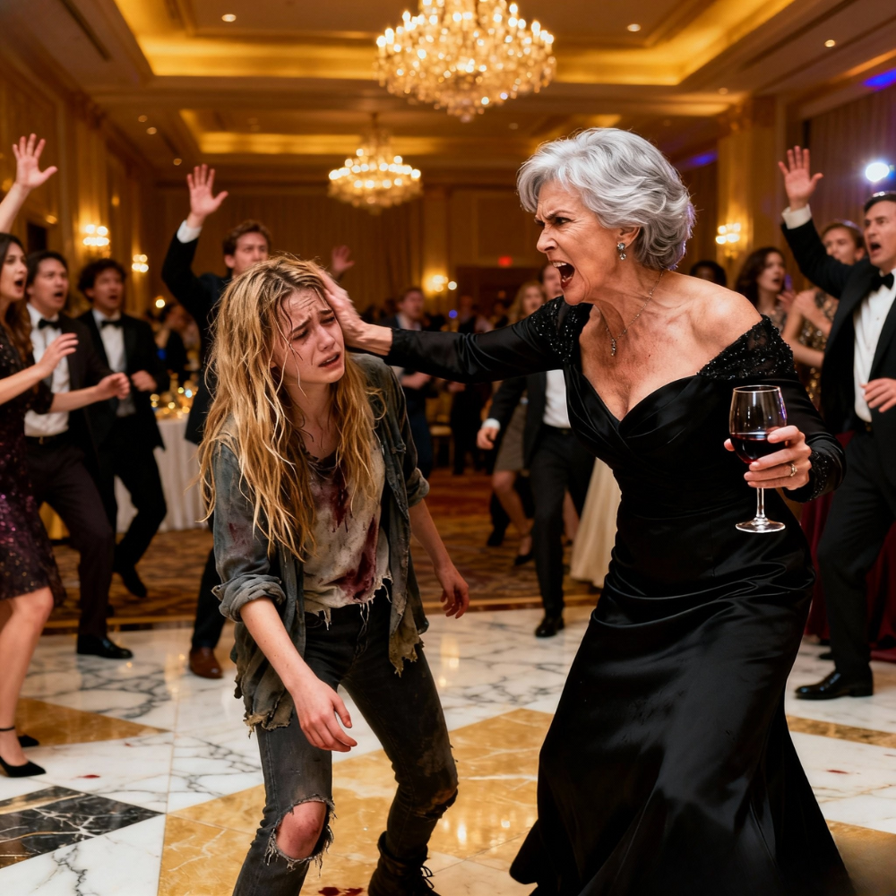 “Security,” she said coldly, lifting one manicured hand and snapping her fingers. “Remove this trash from my party.”