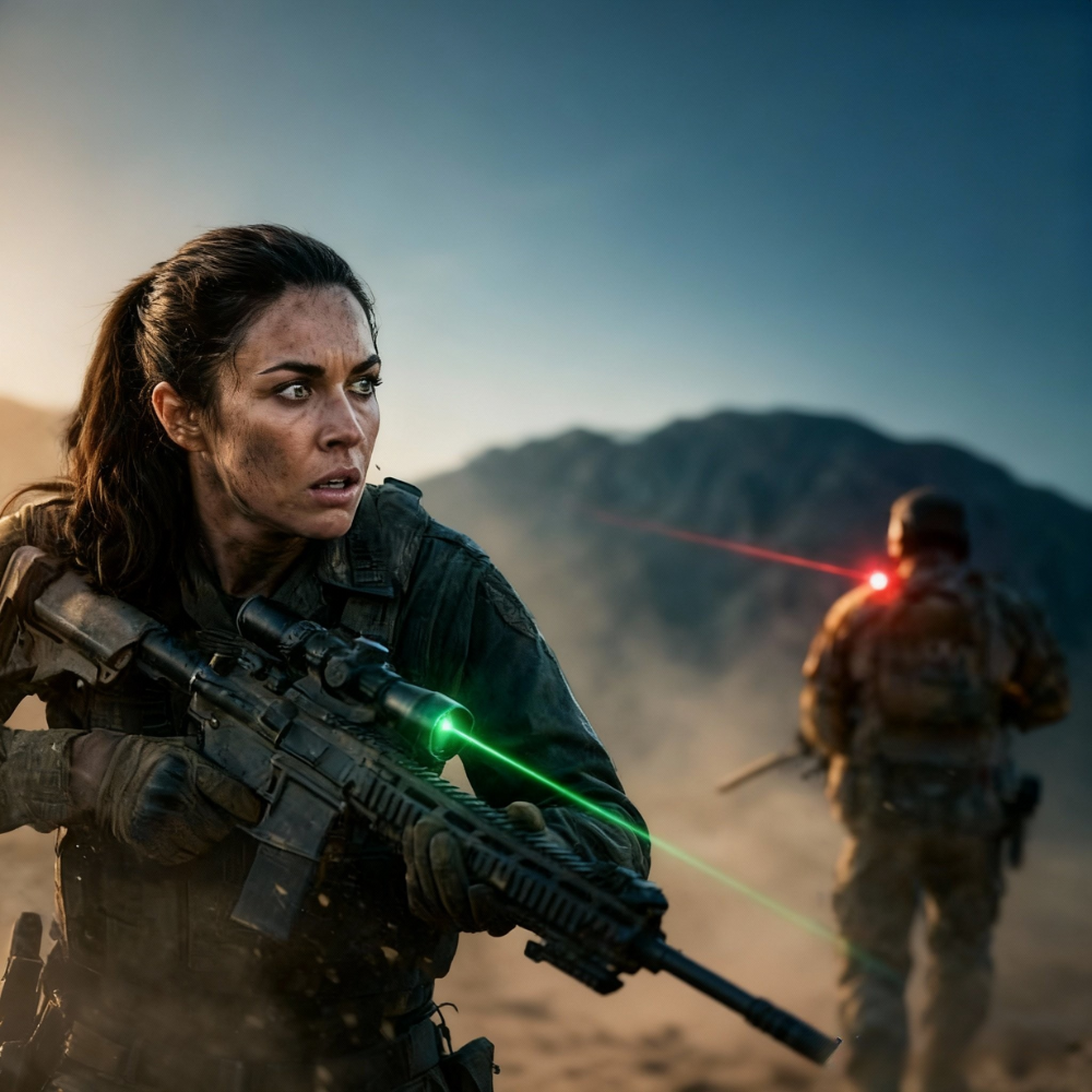 Her body reacted before her thoughts could line up neatly. Seven feet to the commander. The dot was centered, steady. That steadiness was the part that mattered. A nervous shooter’s laser danced. A professional’s laser moved like an instrument. Thirty-one-degree downward angle. Elevated position, second-story ruins across the valley, or a ridge behind them, or both. If she hesitated long enough to confirm, it would be long enough for the shot.