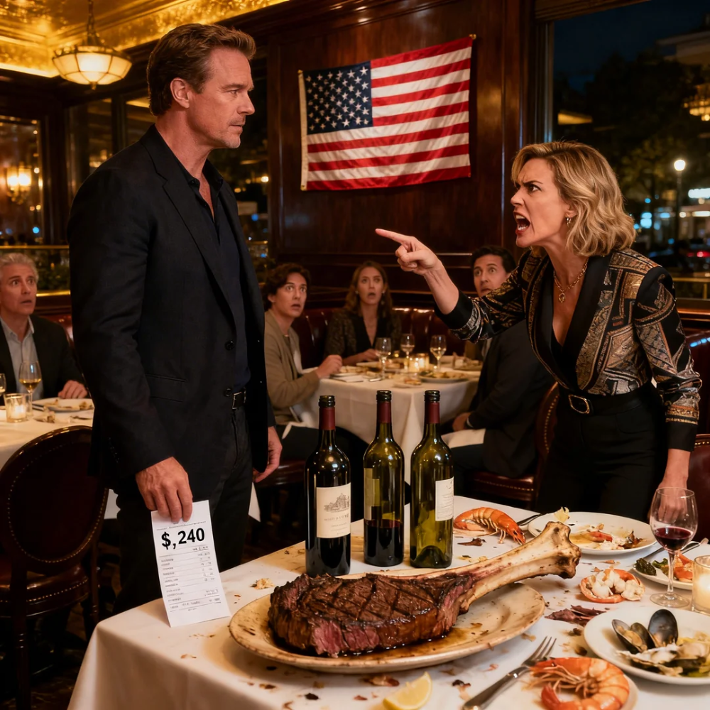 Table four looked like a financial crime scene. Crumpled napkins. Wine stains. Empty shells from the seafood tower. The bone from the tomahawk ribeye resting like evidence.
