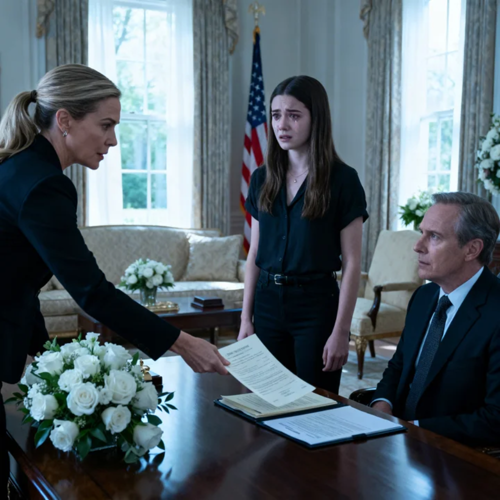 She stood near the window with her arms folded, watching the attorney arrange documents across the table as if she had already rehearsed this moment in her head.