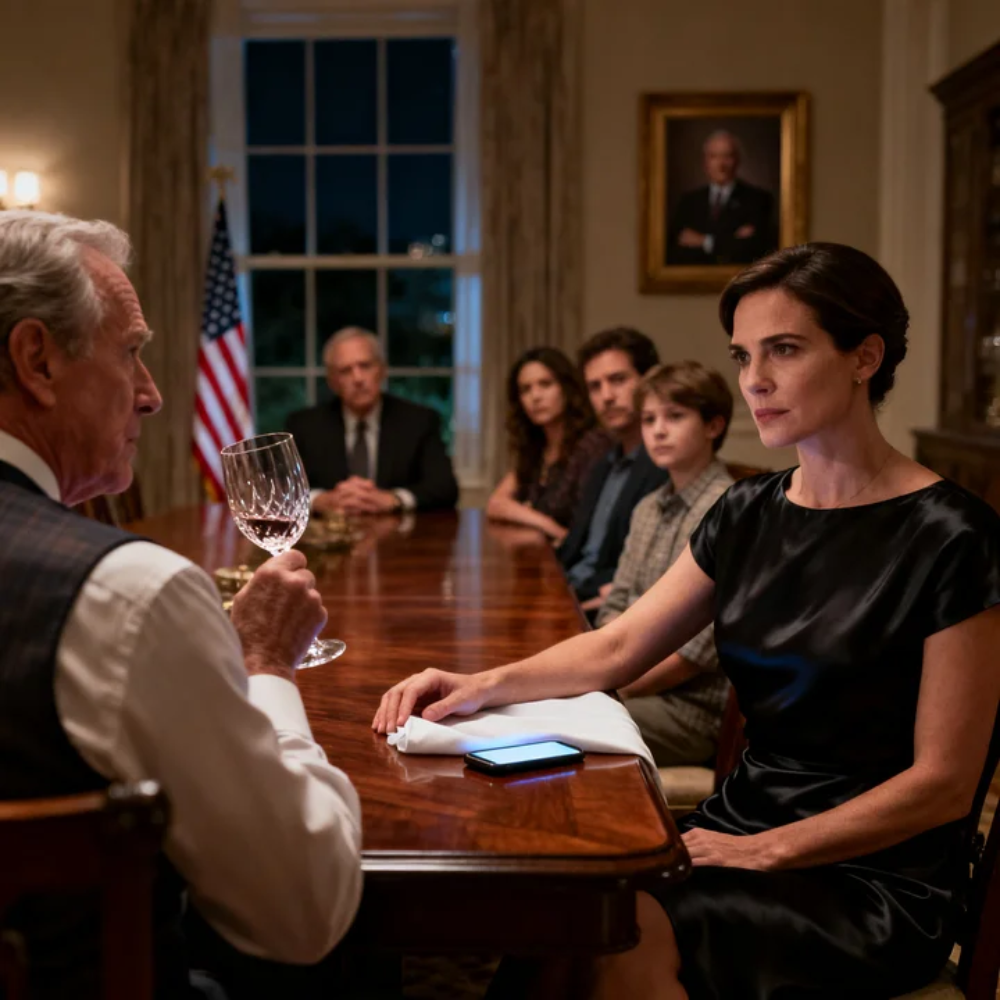 Uncle Wallace rose slowly at the head of the twelve-seat mahogany dining table, the kind custom-built in North Carolina and shipped up to his gated Connecticut estate because nothing “mass produced” ever satisfied him. His cufflinks flashed gold. His smile was smooth, rehearsed, presidential. The walls behind him were lined with framed photos of ribbon cuttings, charity galas in Manhattan, and one particularly large portrait of him shaking hands with a former U.S. Senator at a Silicon Valley tech summit.