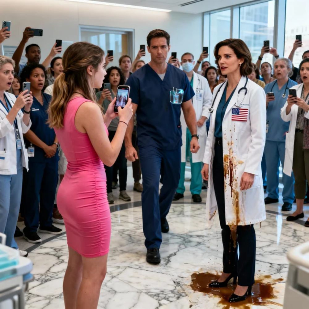 She was about twenty-two. Heavy makeup. Bright red lipstick. A hot pink bodycon dress so tight and short it looked like it belonged in a nightclub, not a hospital lobby full of sick people. On her chest was a blue intern badge.