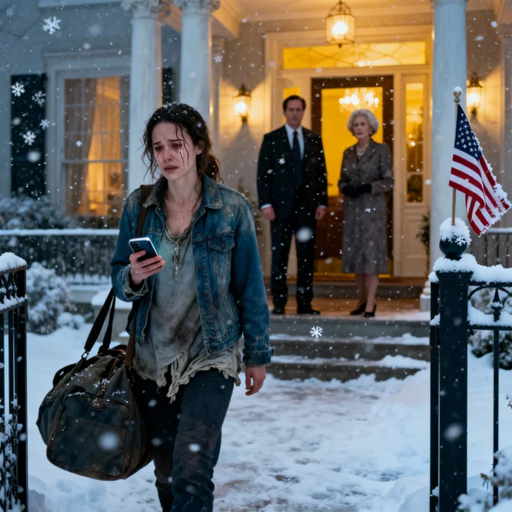 The wind hit her like a physical blow. The snow stung her eyes. She walked down the long driveway, each step a statement. Behind her, the iron gates began to close with a quiet mechanical certainty.