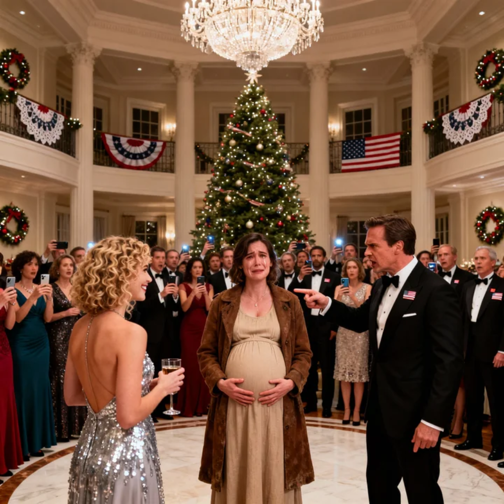 I stood in the middle of my husband’s office Christmas party with my hand resting on the curve of my stomach, six months pregnant, my feet aching in borrowed flats, my breath shallow the way it gets when you’re trying not to cry in public. I could taste champagne in the air even though I hadn’t touched a single glass. The orchestra was playing something familiar—“Carol of the Bells,” I think—but it sounded slower than usual, like the song itself had learned fear.