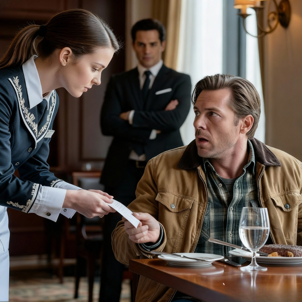 She was exactly what his marketing directors loved: tall, perfectly groomed, a bright white smile framed by lipstick that probably had a French name. Her black dress was pressed to invisible lines. The light caught the discreet diamond stud in her ear. Her eyes, though, were sharp in a way she couldn’t hide, running a quick scan from his worn jacket to his boots and then to the reservations tablet in her hand as if she could erase him by pressing the screen hard enough.