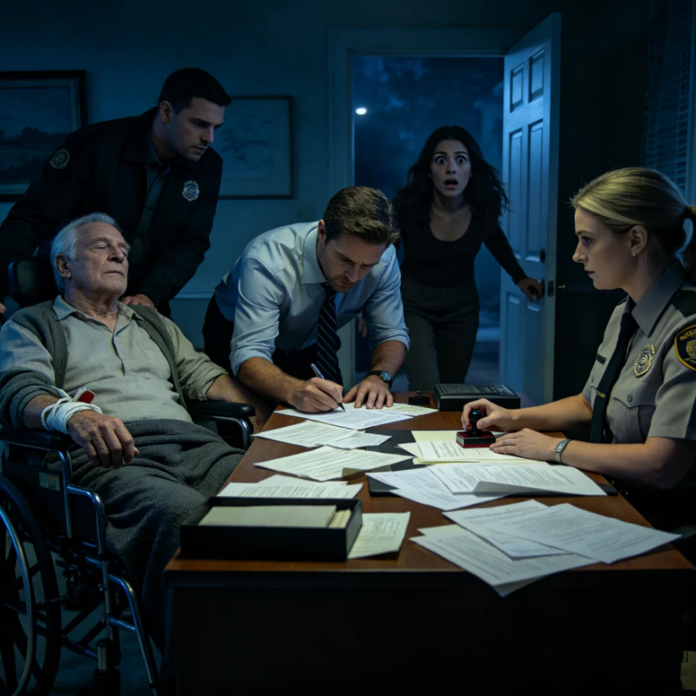 I rushed to his side, dropping to my knees beside the wheelchair. His hand was cold, trembling as Connor tried to guide it toward the page.