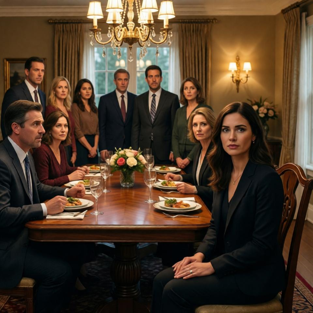 The chandelier did not simply glow above the table that night—it fractured the light into a thousand sharp reflections that danced across crystal glasses and polished silverware, and for a brief, disorienting moment it felt as though the entire room had been constructed out of illusion, each glittering surface designed to distract from something just beneath it, something waiting to be seen if anyone dared to look long enough.