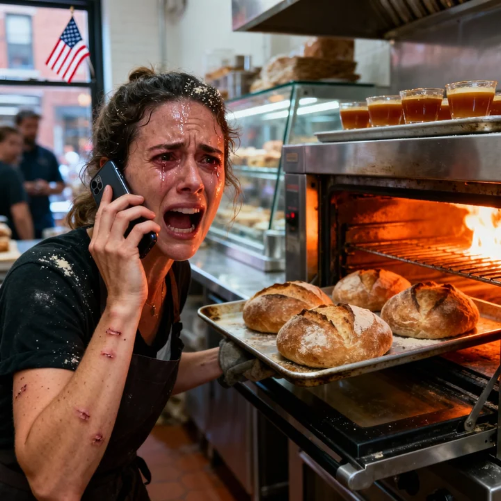 I was pulling a tray of sourdough from a four-hundred-degree oven, my forearms already marked with a constellation of burns that never quite healed—thin white crescents, darker patches, a map of every morning I’d chosen work over sleep. The metal edge nicked through the towel and bit into my palm. Pain flared like a match. I didn’t even flinch. My body had been trained by years of heat and urgency to keep moving.